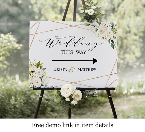 White Roses Wedding This Way Sign Template Create Your Own Etsy
